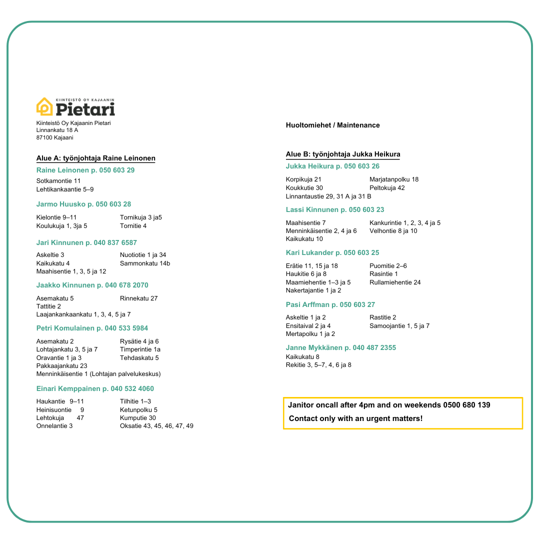 News Changes to the maintenance contact details Hey! There have been changes to the maintenance contact details – grab the updated version here!